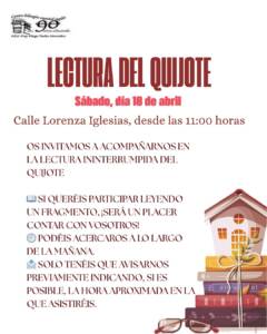 Como viene siendo tradición en estas fechas, a partir de las 11:00 de la mañana, la Carpa de Actividades realizará la lectura del Quijote, actividad dirigida y coordinada por el IES Fray Diego Tadeo, acompañado de un concierto de música barroca.