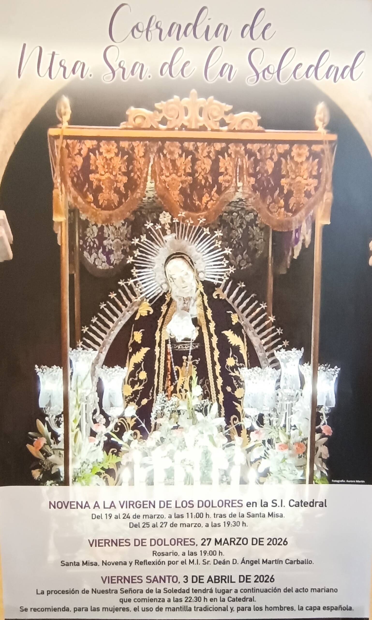 Novena en honor a nuestra Señora de la Soledad del 19 al 24 de marzo, a las 11:00 h Santa Misa y Novena, en la S.I. Catedral. Días 25 y… |